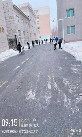 2026年1月9日夜间,抚顺迎新年首场大雪,积雪快速覆盖校园道路,正值学生返乡、教师集中批改试卷的假期,给校园通行带来严峻挑战。