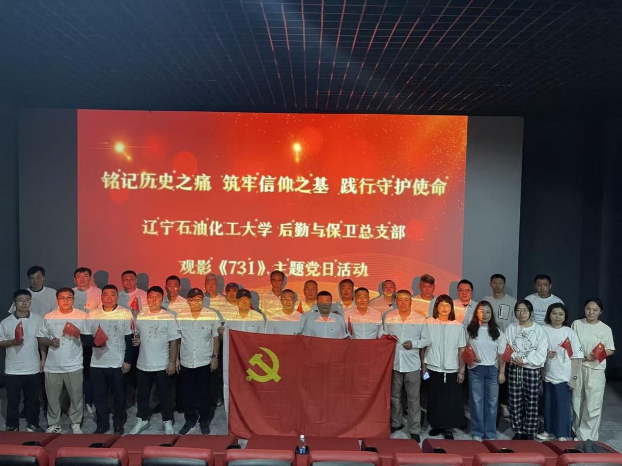 国庆佳节来临之际,中共辽宁石油化工大学后勤与保卫总支部组织全体党员干部开展“铭记历史之痛、筑牢信仰之基、践行守护使命”主题党日活动,以观红色影片、忆峥嵘岁月的方式,引导党员干部从历史中汲取奋进力量,坚守初心使命。